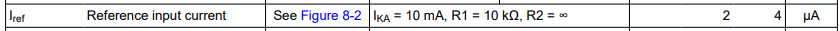 When selecting the sampling resistors, one would want to minimise the current to reduce power dissipation on those resistors. To select R1 ~ R3, consider the reference input current of TL431. From the datasheet:
