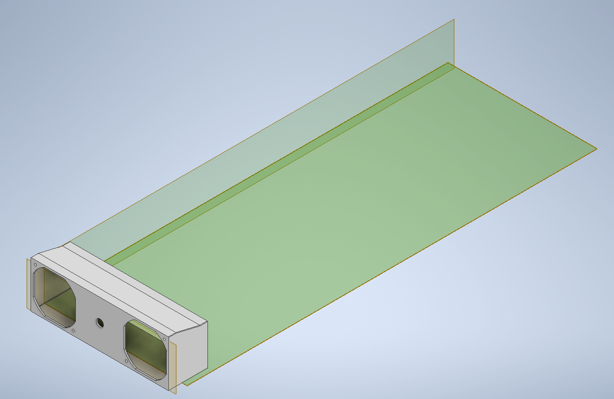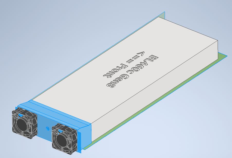 Most people modifying blade servers will cut a large hole on the steel lid and glue or duct tape a 90cm+ PC case fan for cooling, but I wanted to come up with a more elegant solution as I try to avoid destructive mods like this. Once I made sure the whole system setup works, I fired up Inventor and modelled an adapter for two little server fans at the back: