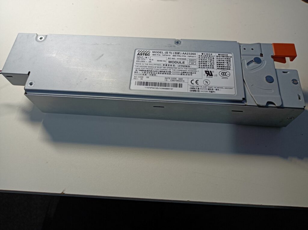 Once I’ve managed to get the blade server to work and boot Ubuntu, I got a server power supply out of my old servers collection: