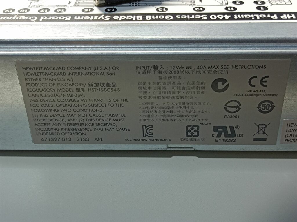 The latter two servers I got have a slightly different part number (655492-003 instead of 655492-004), and they were equipped with E5 2620 CPUs instead of the 2640v2. Oh well, the CPUs don’t worth much anyway… Despite both being BL460 Gen8, there are some minor differences between the model with the suffix -003 and the -004, with the most notable being the power jacks on the -003 are actually a little smaller than the ones in the -004, and some 4mm banana plugs may not fit.