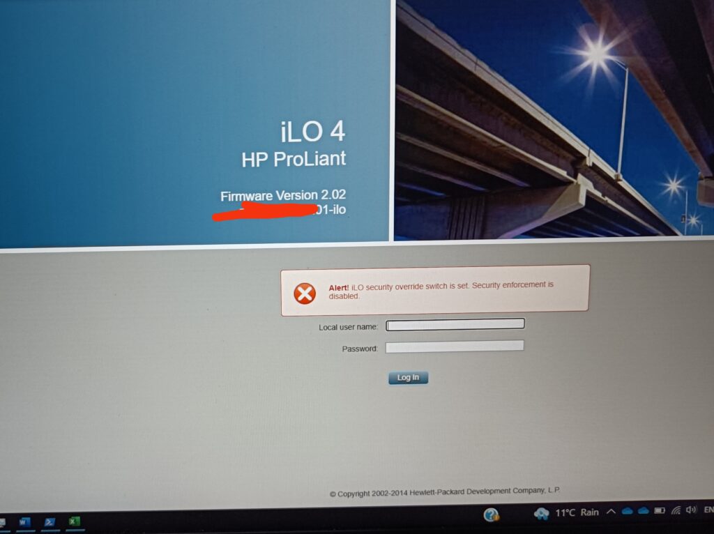 With the switch blocks 1 and 3 set to the ON position, the iLO security is overridden and the default admin/admin credentials can be used to log into the iLO interface: