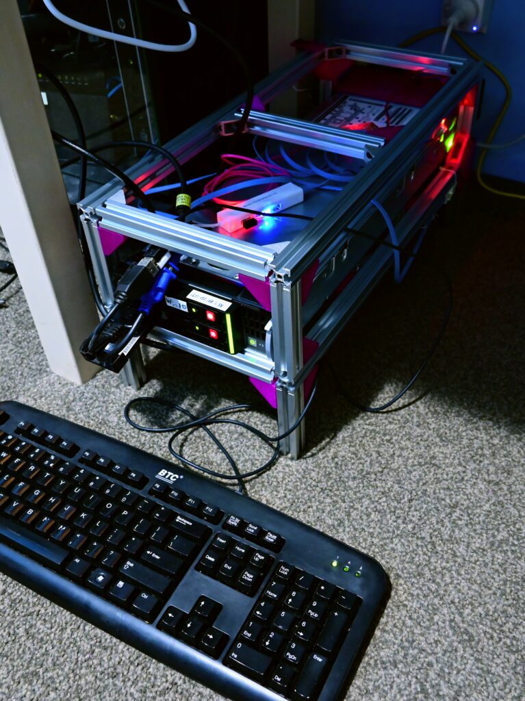 Firstly, I needed to house everything together in a strong enough structure. I chose the 2020 Aluminium extrusions as they’re strong, versatile and relatively easy to process. I had some experience with them when I put together my 3D printer and installed custom modules, so I was familiar with how they work. With that said, I haven’t designed anything with them from the ground up, so it was also a learning opportunity.