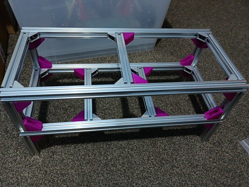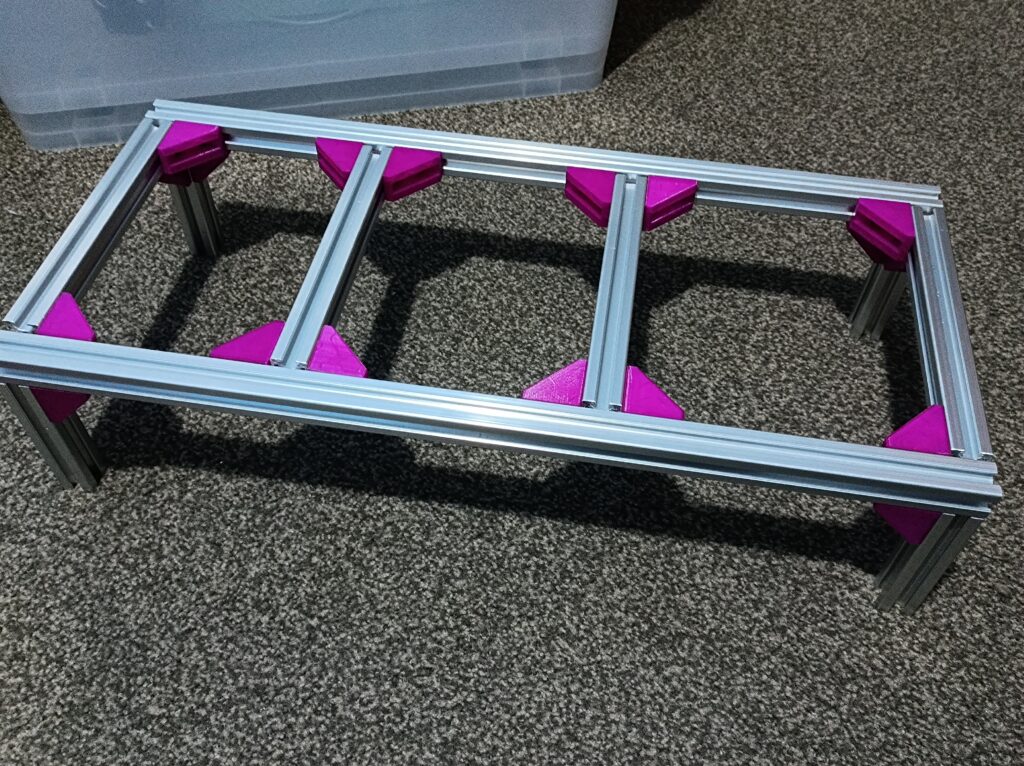 Originally, I planned to use 3D-printed joints for everything to save cost, as with something this small, the cost of metal joints would get close to the cost of the extrusions themselves. With that said, they’ll never be as strong as the metal joints. In the end, I chose a mix of metal joints for the main load-bearing points and printed joints for the rest to save some cost.