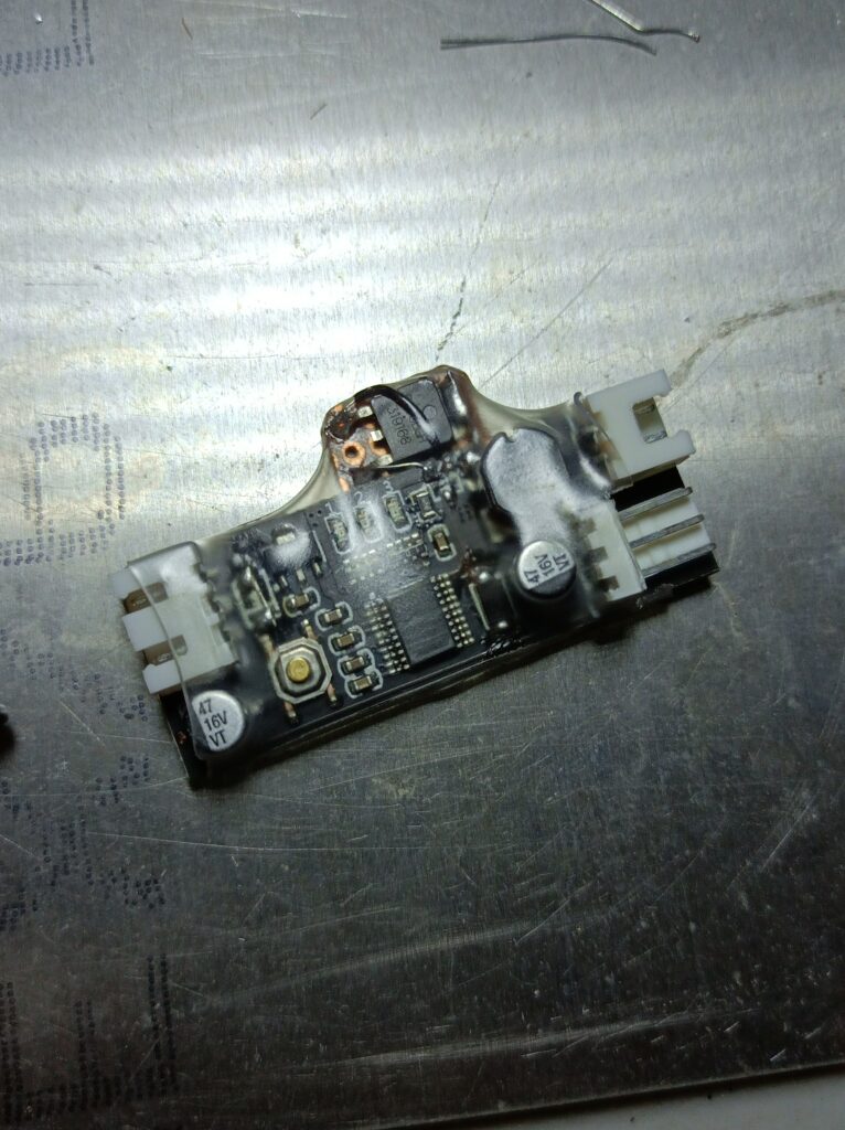 As shown in the tables, the AP6679 has a much higher drain current rating, although also a much larger input capacitance, which might affect the gate waveform, degrading the overall efficiency. Still, probing reveals that the controller runs at 50kHz, which is not very high. The gate resistance used on the original controller was 100Ω – I just replaced it with a 10Ω resistor and the plan was to probe the gate waveform afterwards to see if it looks okay.