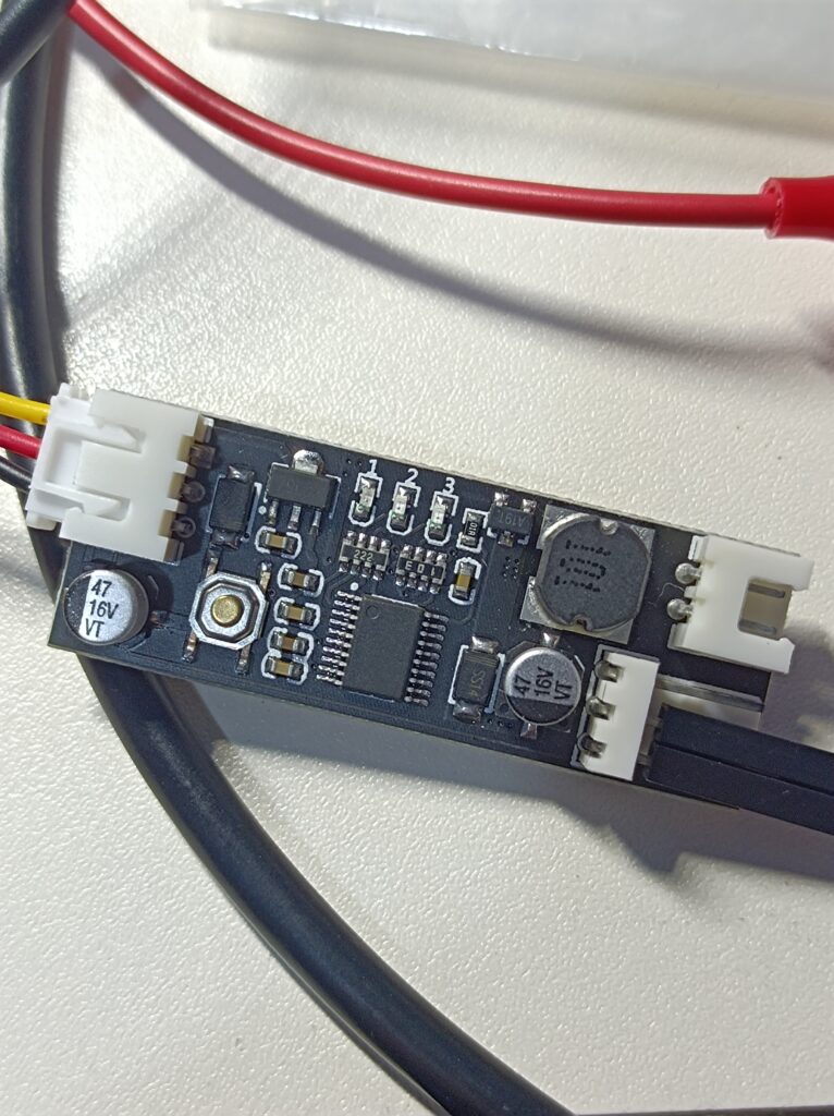 As the fans on the fan adapter are server fans, they get really loud if given the full 12V power. Wiring them directly to 12V is certainly not desirable if I wanted to use the setup as a PC. Previously, I bought some fan controllers that take a thermistor input and installed one in my T3600 desktop for the CPU fan (with the stock BIOS and Windows 10, the fan always stays at the minimum speed no matter how hot the CPU gets). Here’s a photo of the fan controller: