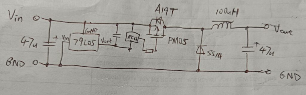 This fan controller also passes through the tachometer signal of the fan, requiring the input and output lines to share a common ground. I think how it handles the PMOS driving is quite clever here: a negative voltage linear regulator (79L05) is used to generate a power rail 5V below the +12V input line. Its output line is then used as a floating ground for the microcontroller, which reads the temperature and generates the appropriate PWM signal for the MOSFET. This arrangement allows a simple, direct connection between the microcontroller and the MOSFET gate, as when the MCU outputs a logic low, the MOSFET will see a -5V gate-source voltage, turning it on. When the MCU outputs a logic high, Vgs would be 0V, turning it off. There is also no output voltage or current feedback (as it doesn’t really need one), making the whole system very simple and low-cost.