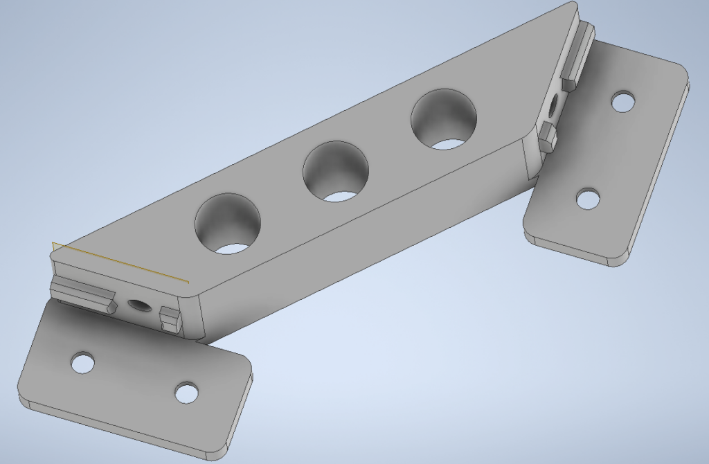 I designed the corner gussets in a shape similar to the common aluminium counterparts but with much thicker walls. It’s designed to fit M4 screws and seemed to work okay when I just printed them in PLA. Being plastic, they won’t have nearly as much strength as the metal ones (even with thickened walls) but would do for my purpose. Here’s the model, both as an Inventor part and as an STL file: